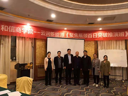 2018年11月3日—4日,云潤(rùn)新能源針對(duì)企業(yè)發(fā)展過程中出現(xiàn)的業(yè)績(jī)瓶頸問題請(qǐng)和信商學(xué)院共同進(jìn)行專項(xiàng)研究培訓(xùn)。該培訓(xùn)共持續(xù)兩天一夜,期間商學(xué)院與云潤(rùn)成員共同梳理業(yè)務(wù)流程、制定考核措施等。